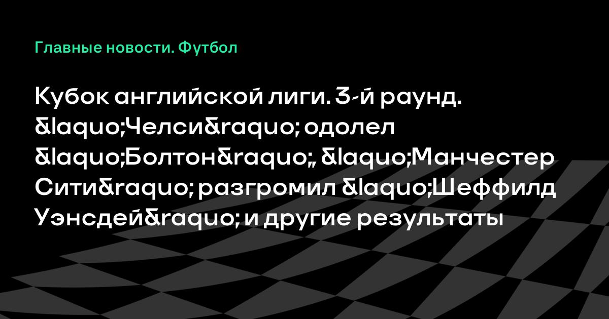 Кубок английской лиги. 3-й раунд. «Челси» одолел «Болтон», «Манчестер Сити» разгромил «Шеффилд Уэнсдей» и другие результаты