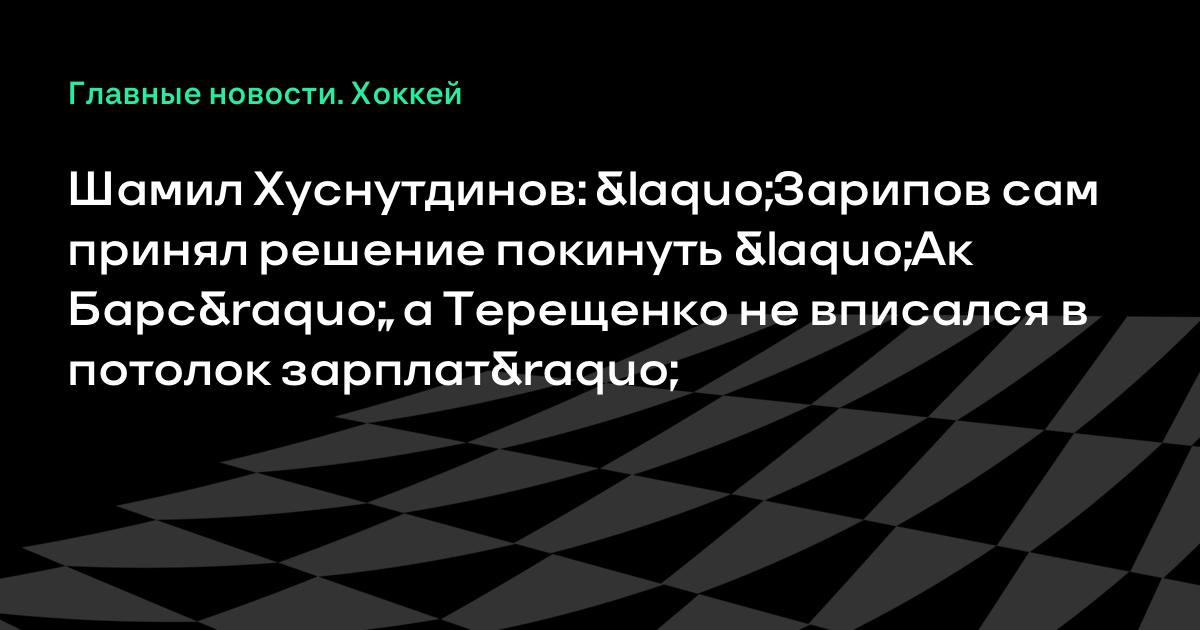 Шамил Хуснутдинов: «Зарипов сам принял решение покинуть «Ак Барс», а Терещенко не вписался в потолок зарплат»