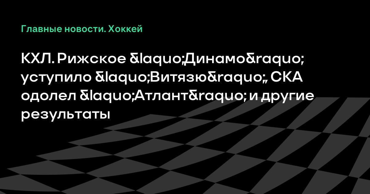 КХЛ. Рижское «Динамо» уступило «Витязю», СКА одолел «Атлант» и другие результаты