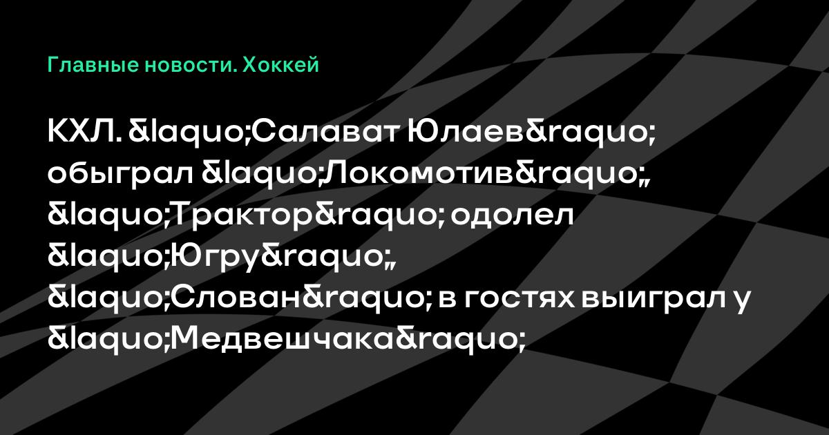 КХЛ. «Салават Юлаев» обыграл «Локомотив», «Трактор» одолел «Югру», «Слован» в гостях выиграл у «Медвешчака»