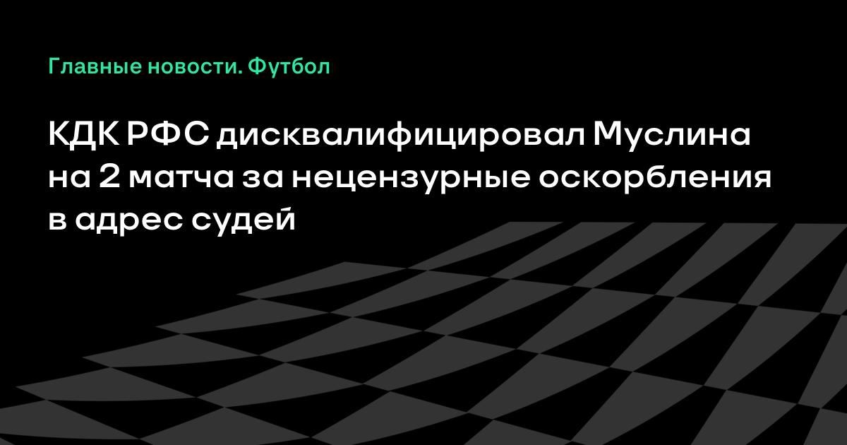 «В соответствии с частью 1 статьи 95 Дисциплинарного регламента РФС за оскорбительное поведение главного тренера ФК «Амкар» г. Пермь С. Муслина в отношении судейской бригады матча, выразившееся в использовании ненормативной лексики после окончания матча – дисквалифицировать главного тренера ФК «Амкар» г. Пермь С. Муслина на 2 матча СОГАЗ-Чемпионата России по футболу», – говорится в заявлении КДК.