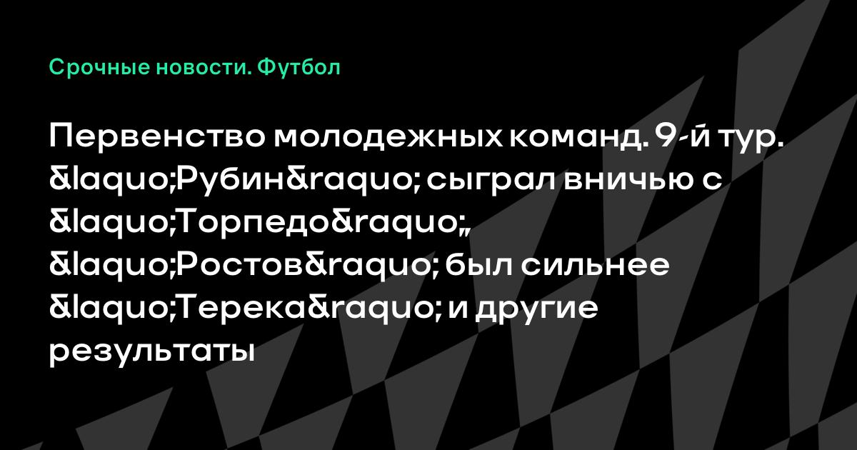 Первенство молодежных команд. 9-й тур. «Рубин» сыграл вничью с «Торпедо», «Ростов» был сильнее «Терека» и другие результаты