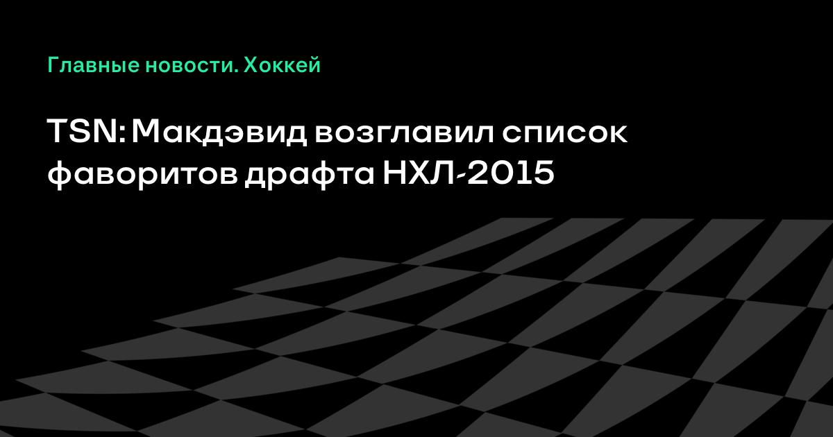 Нападающий «Эри» Коннор Макдэвид возглавил список фаворитов драфта НХЛ-2015 по версии TSN. В 15 лучших вошли 8 канадцев, 4 американца, 2 чеха и 1 швед.