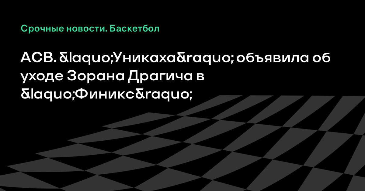 ACB. «Уникаха» объявила об уходе Зорана Драгича в «Финикс»