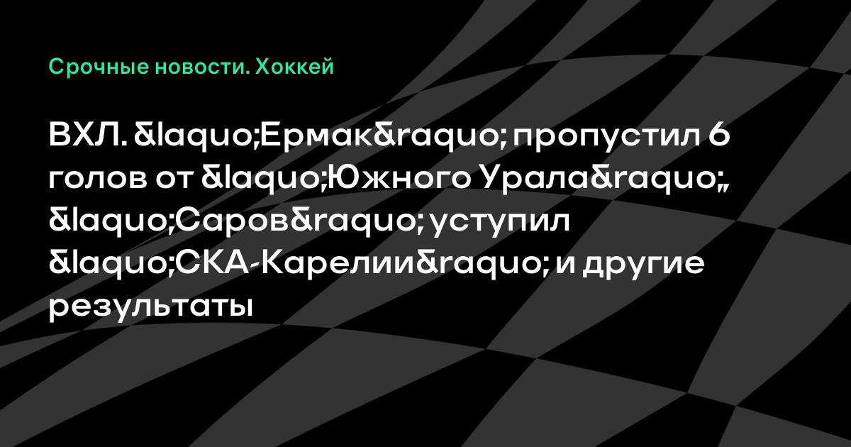 ВХЛ. «Ермак» пропустил 6 голов от «Южного Урала», «Саров» уступил «СКА-Карелии» и другие результаты