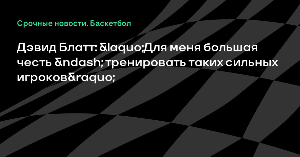 Дэвид Блатт: «Для меня большая честь – тренировать таких сильных игроков»