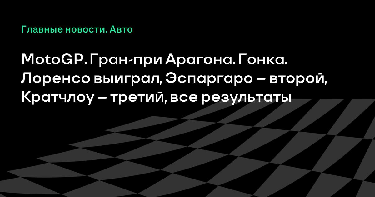 MotoGP. Гран-при Арагона. Гонка. Лоренсо выиграл, Эспаргаро – второй, Кратчлоу – третий, все результаты