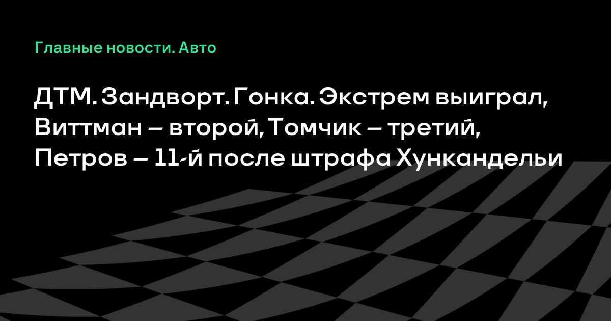 ДТМ. Зандворт. Гонка. Экстрем выиграл, Виттман – второй, Томчик – третий, Петров – 11-й после штрафа Хункандельи