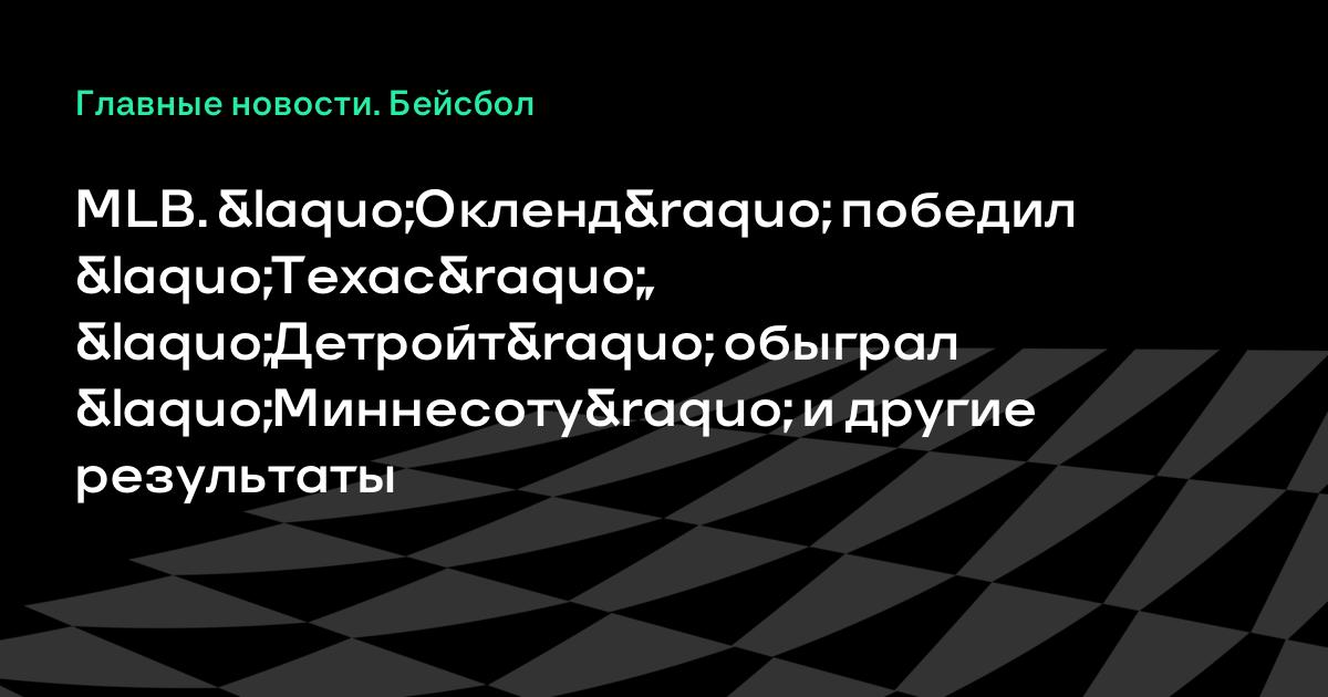 MLB. «Окленд» победил «Техас», «Детройт» обыграл «Миннесоту» и другие результаты