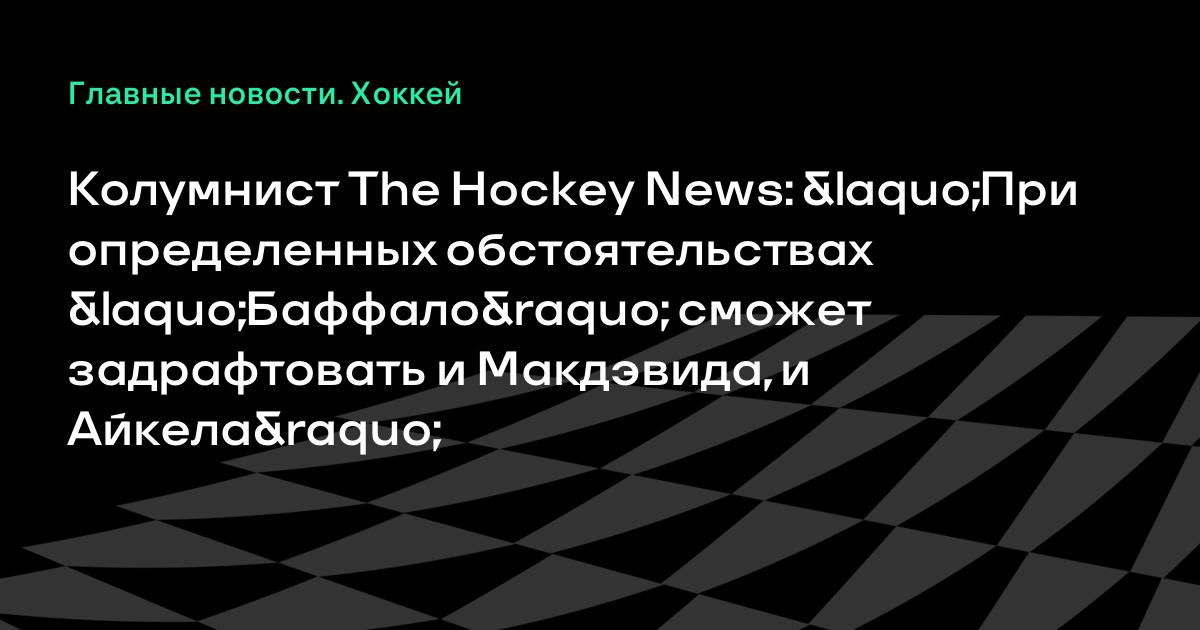 Колумнист The Hockey News: «При определенных обстоятельствах «Баффало» сможет задрафтовать и Макдэвида, и Айкела»