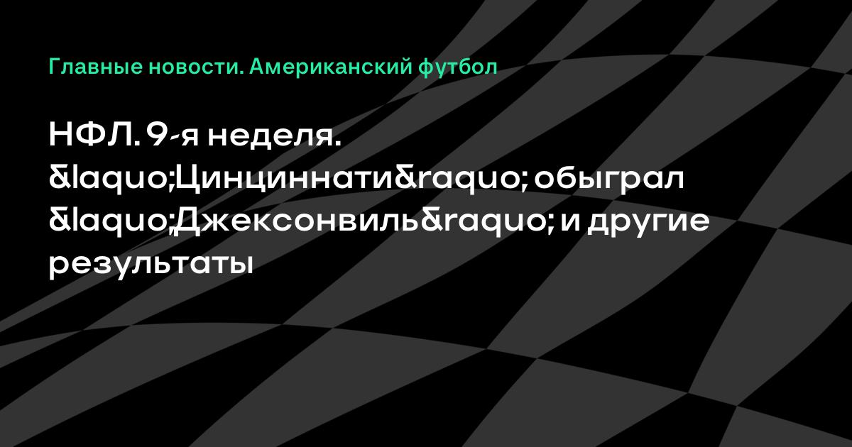 НФЛ. 9-я неделя. «Цинциннати» обыграл «Джексонвиль» и другие результаты