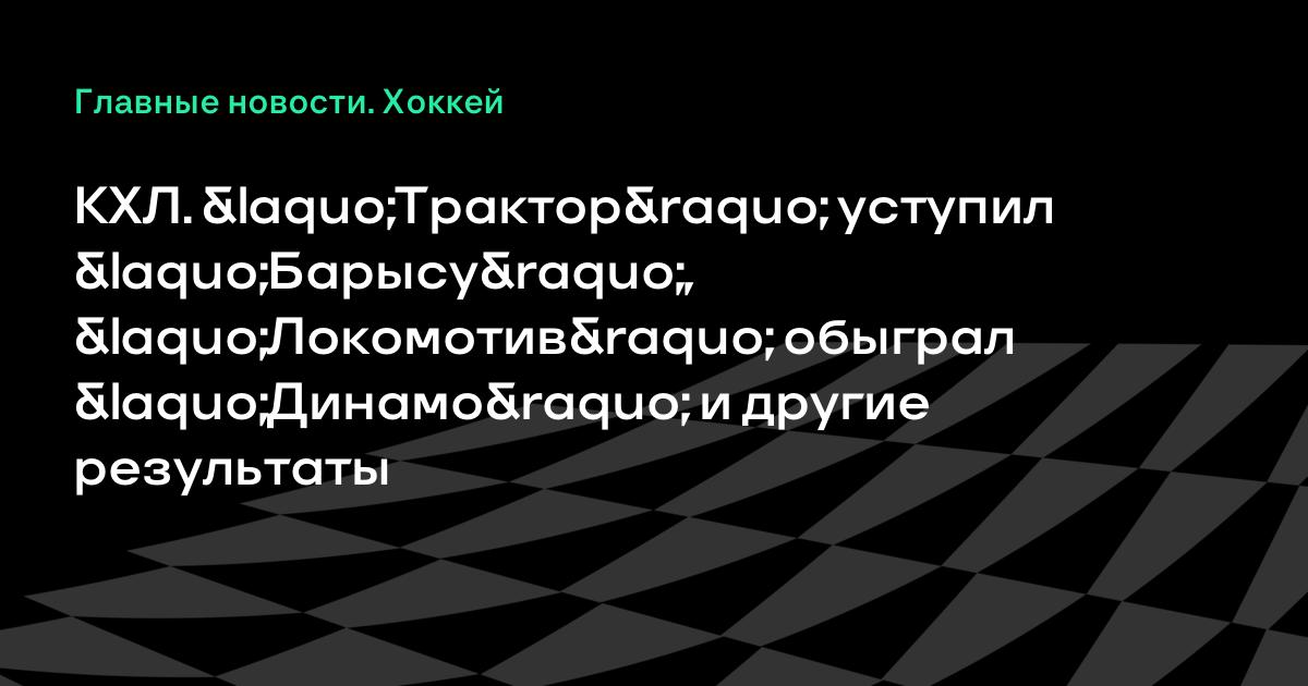 КХЛ. «Трактор» уступил «Барысу», «Локомотив» обыграл «Динамо» и другие результаты