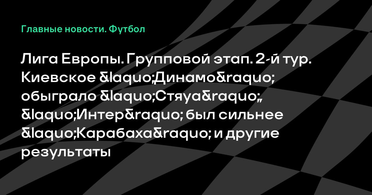 Лига Европы. Групповой этап. 2-й тур. Киевское «Динамо» обыграло «Стяуа», «Интер» был сильнее «Карабаха» и другие результаты