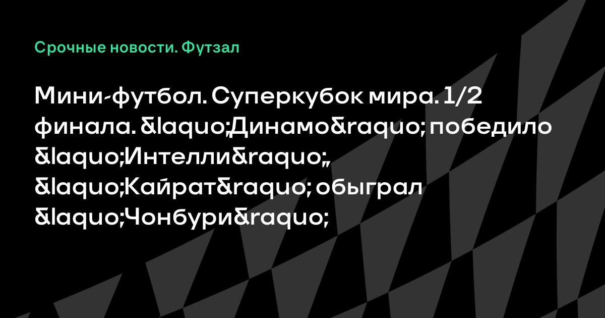 Подмосковное мини-футбольное «Динамо» сегодня победило бразильский клуб «Интелли» в полуфинале Суперкубка мира, который проходит в Казахстане.