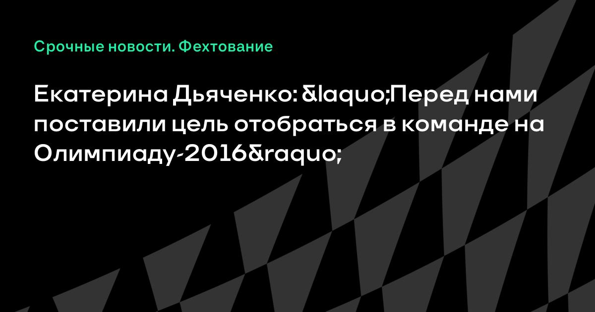 Я лично буду стараться сразу быть готовой на все 100 процентов. Руководство ставит перед нами задачу отобраться в команде на Олимпийские игры в Рио-де-Жанейро. Естественно, мы будем стремиться ее реализовать, заработать в Рио», – рассказала Дьяченко в интервью агентству «Весь спорт».