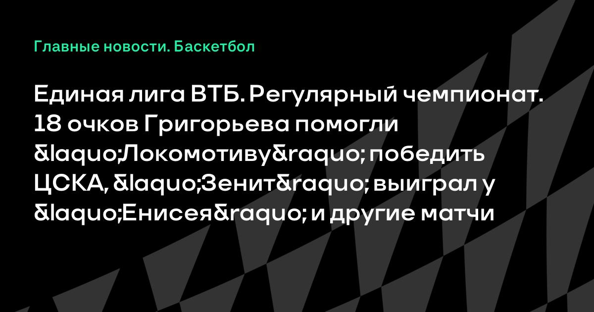 Единая лига ВТБ. Регулярный чемпионат. 18 очков Григорьева помогли «Локомотиву» победить ЦСКА, «Зенит» выиграл у «Енисея» и другие матчи