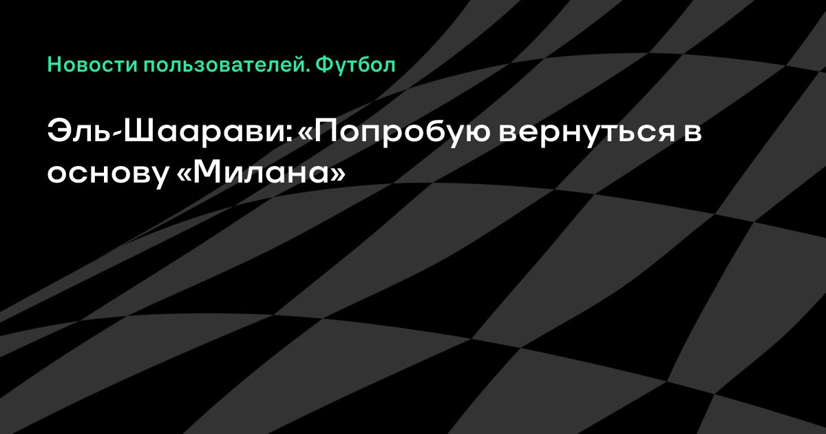 Пока не задумываюсь о смене команды. «Милан» поддерживал меня, пока я лечился, и я хотел быть ответить команде добром на добро. Продолжу упорно работать на каждой тренировке и терпеливо ждать своего шанса», — заявил двадцатиоднолетний Эль-Шаарави в интервью Tutto Mercato