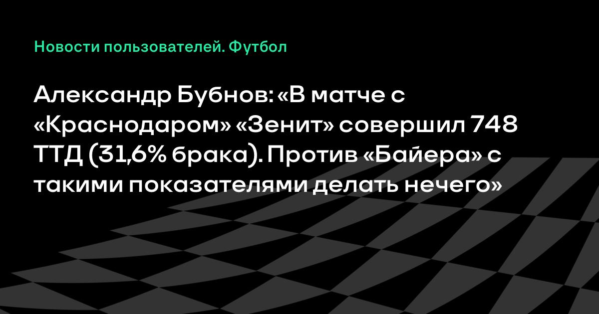 Александр Бубнов: «В матче с «Краснодаром» «Зенит» совершил 748 ТТД (31,6% брака). Против «Байера» с такими показателями делать нечего»