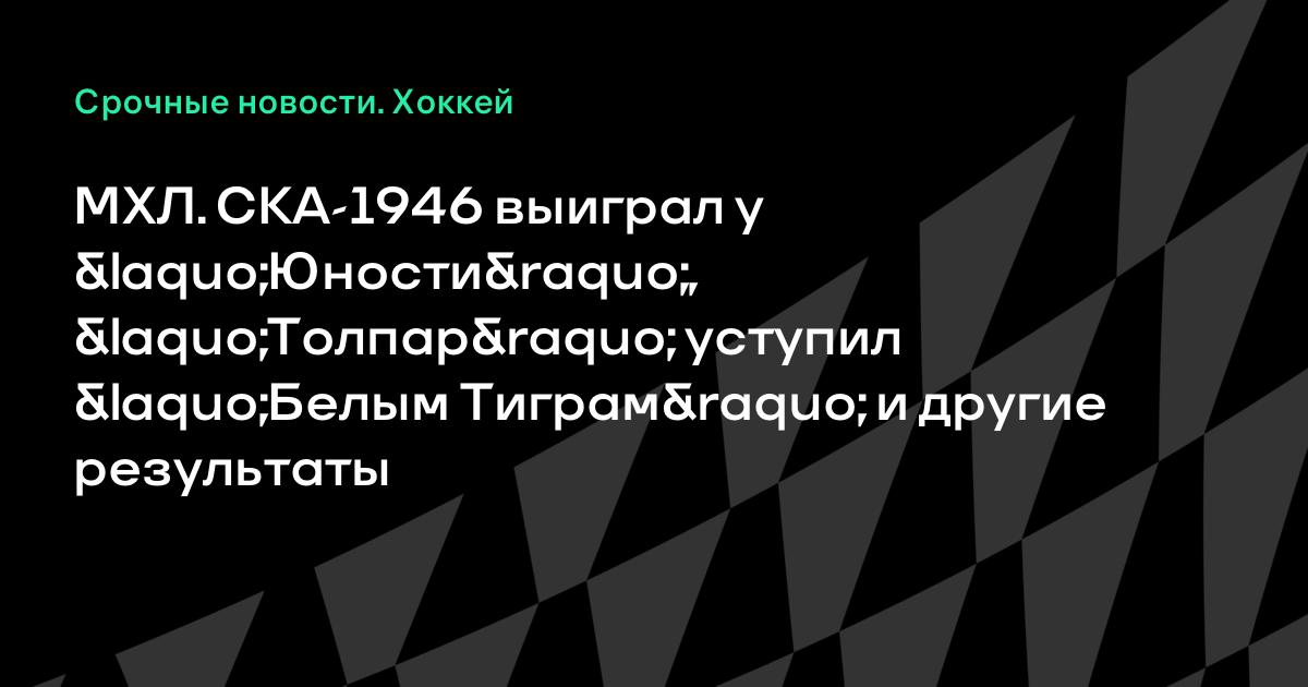 МХЛ. СКА-1946 выиграл у «Юности», «Толпар» уступил «Белым Тиграм» и другие результаты