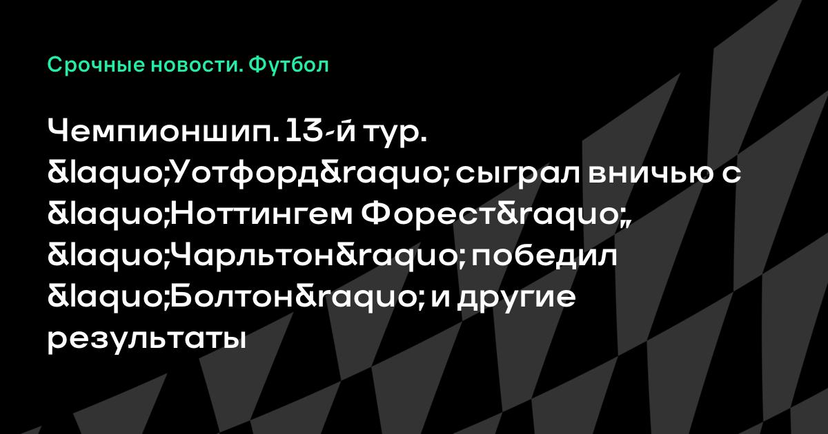 Чемпионшип. 13-й тур. «Уотфорд» сыграл вничью с «Ноттингем Форест», «Чарльтон» победил «Болтон» и другие результаты