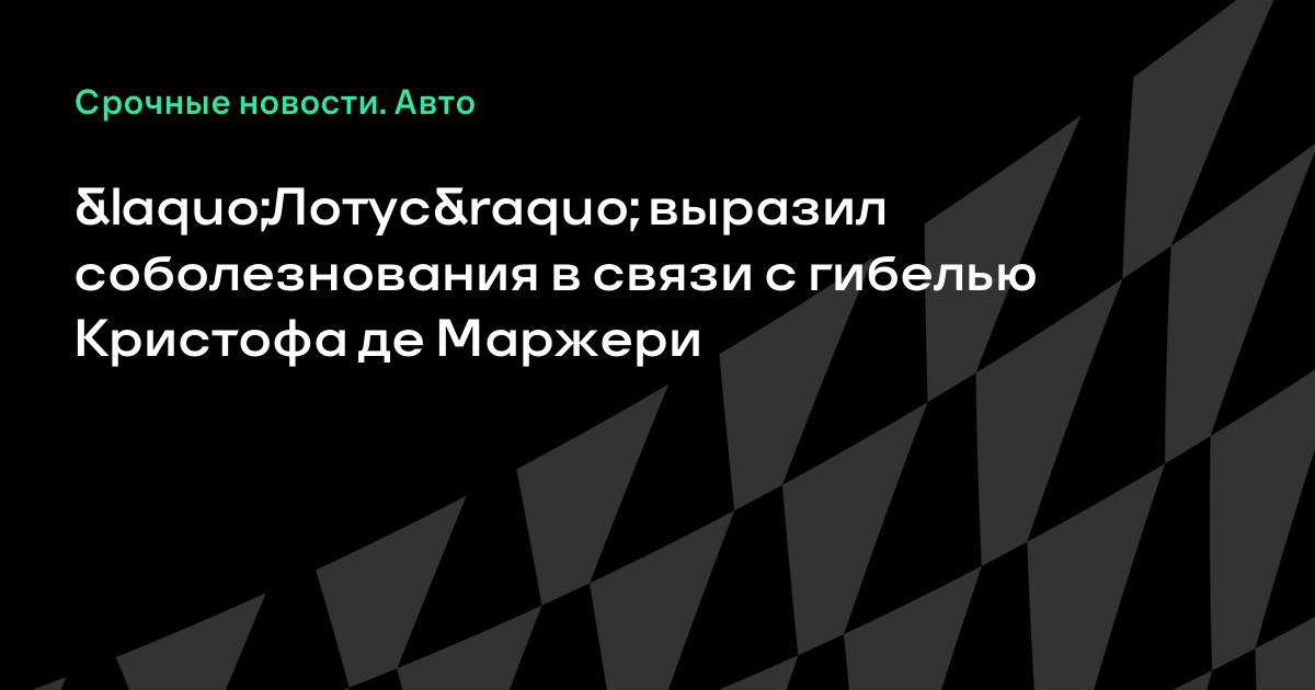 Пресс-служба «Лотуса» опубликовала заявление в связи с гибелью президента компании Total Кристофа де Маржери.