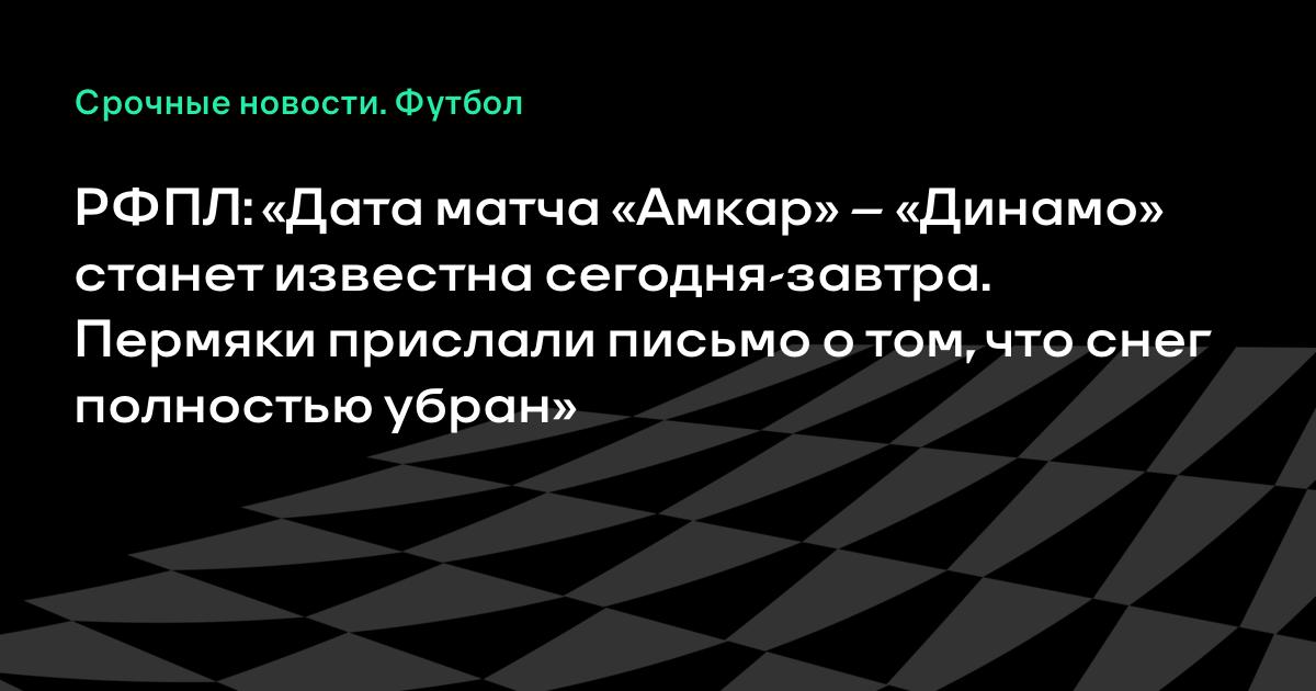 РФПЛ: «Дата матча «Амкар» – «Динамо» станет известна сегодня-завтра. Пермяки прислали письмо о том, что снег полностью убран»
