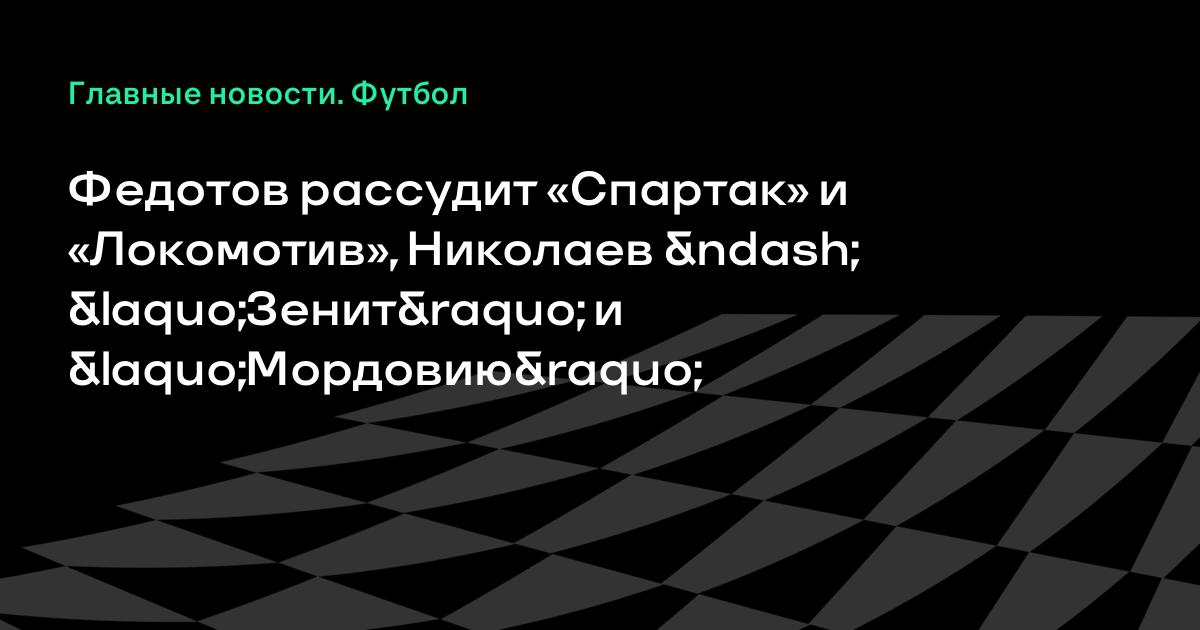 Федотов рассудит «Спартак» и «Локомотив», Николаев – «Зенит» и «Мордовию»