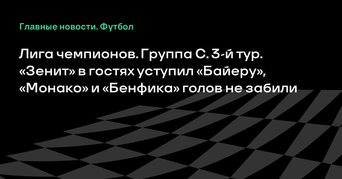 В 3-м туре группового раунда Лиги чемпионов «Зенит» оказался слабее «Байера» (0:2), а «Бенфика» разошлась миром с «Монако» (0:0).