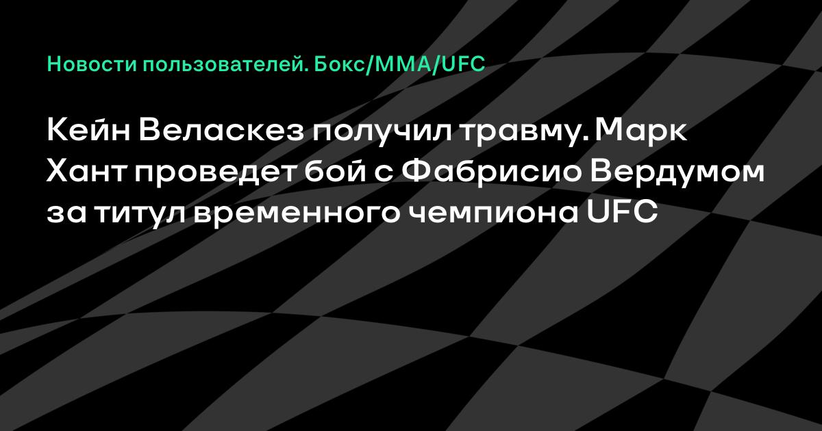 Кейн Веласкез получил травму. Марк Хант проведет бой с Фабрисио Вердумом за титул временного чемпиона UFC