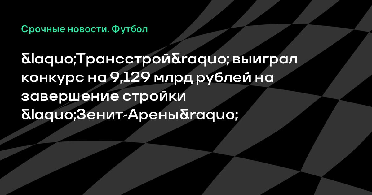 «Трансстрой», генеральный подрядчик «Зенит-Арены» на Крестовском острове, победил в конкурсе на сумму 9,129 миллиарда рублей на завершение строительства стадиона.