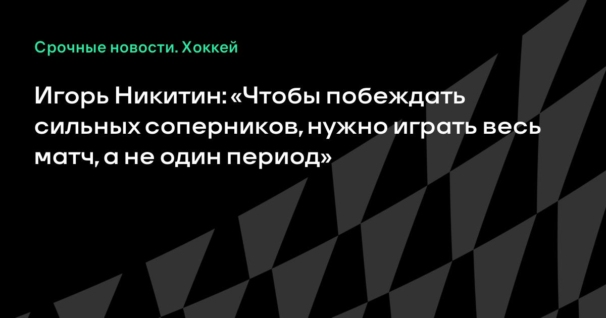Игорь Никитин: «Чтобы побеждать сильных соперников, нужно играть весь матч, а не один период»