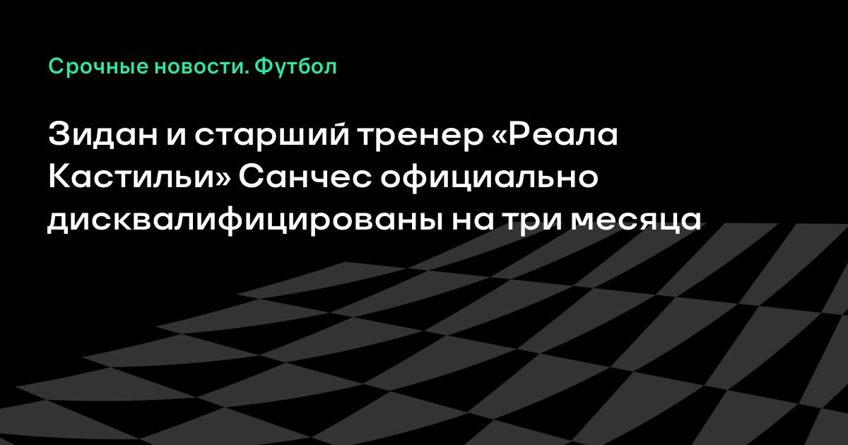 Главный тренер «Реал Мадрид Кастильи» Зинедин Зидан и старший тренер команды Сантьяго Санчес не смогут руководить командой на протяжении трех месяцев.