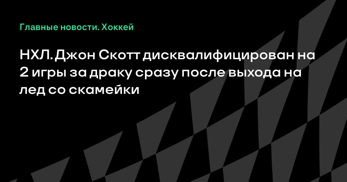 Глава Департамента безопасности игроков НХЛ Стефан Кинтал дисквалифицировал форварда «Сан-Хосе» Джона Скотта на 2 матча.