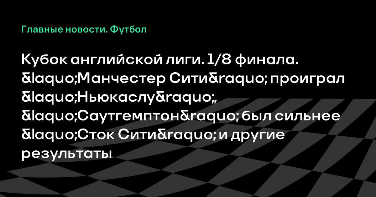 Кубок английской лиги. 1/8 финала. «Манчестер Сити» проиграл «Ньюкаслу», «Саутгемптон» был сильнее «Сток Сити» и другие результаты