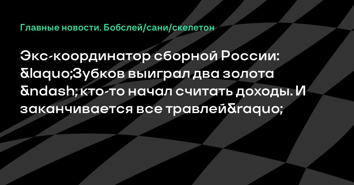 Экс-координатор сборной России: «Зубков выиграл два золота – кто-то начал считать доходы. И заканчивается все травлей»