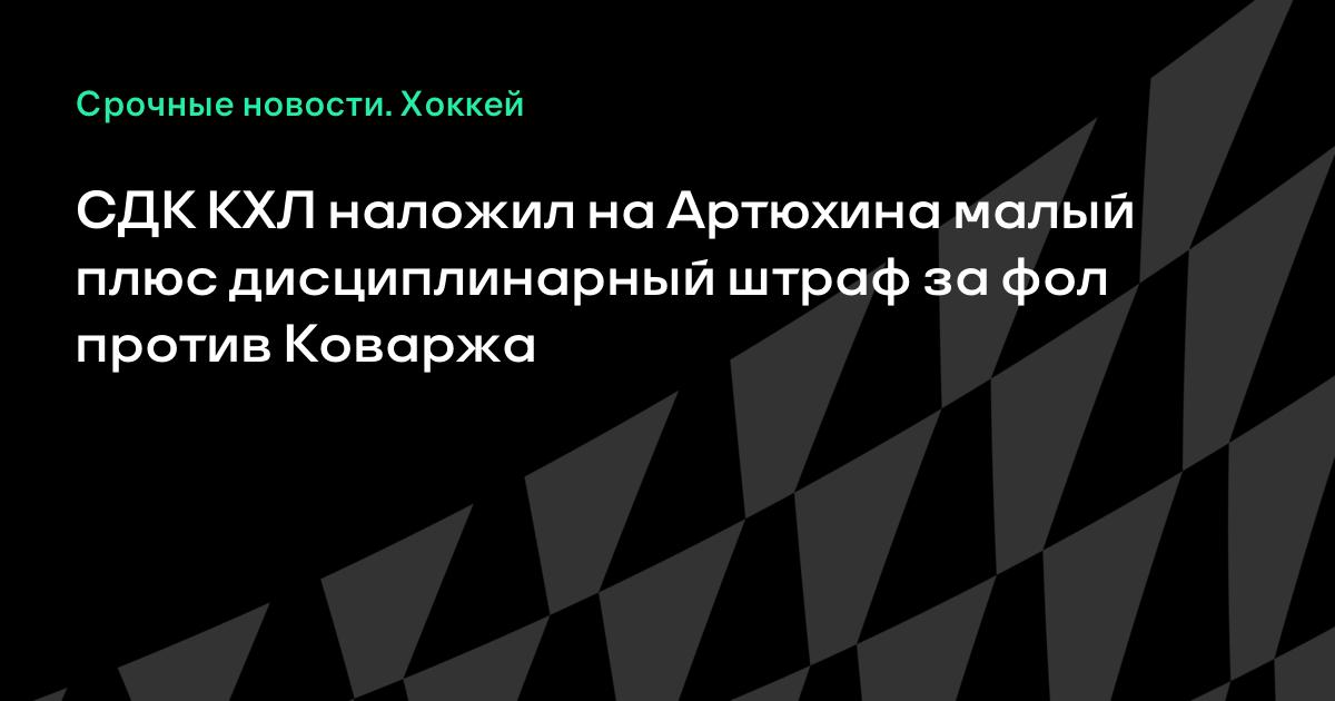 СДК КХЛ наложил на Артюхина малый плюс дисциплинарный штраф за фол против Коваржа