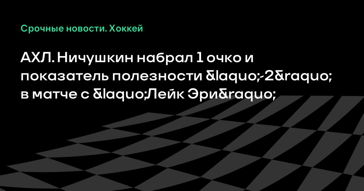 АХЛ. Ничушкин набрал 1 очко и показатель полезности «-2» в матче с «Лейк Эри»
