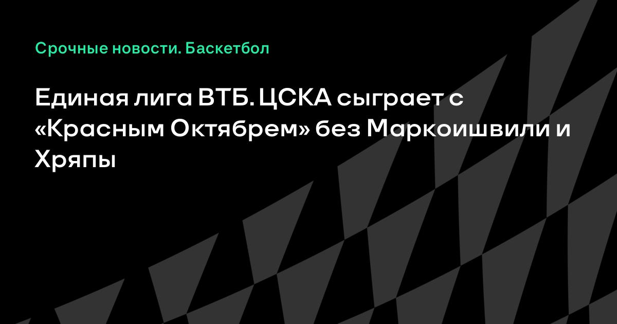 ЦСКА проведет матч 5-го тура регулярного чемпионата Единой лиги ВТБ с «Красным Октябрем» без травмированных форвардов Манучара Маркоишвили и Виктора Хряпы, сообщает официальный сайт армейцев.