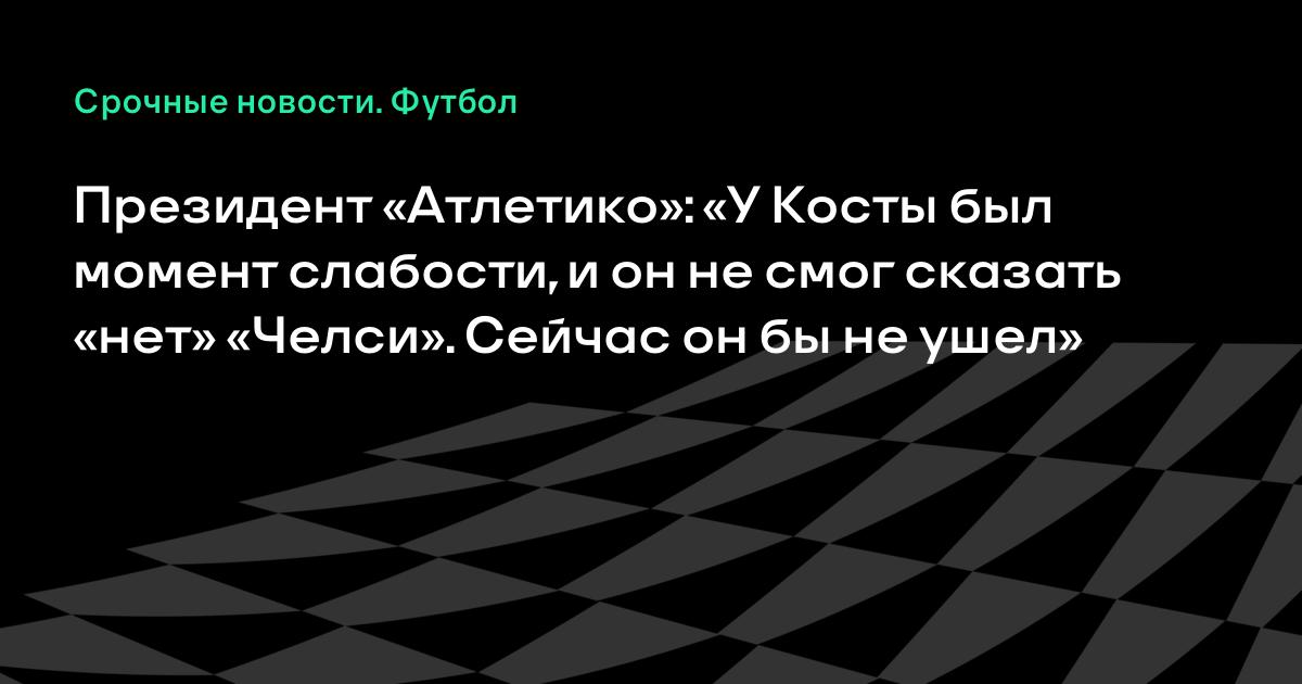 Президент «Атлетико»: «У Косты был момент слабости, и он не смог сказать «нет» «Челси». Сейчас он бы не ушел»
