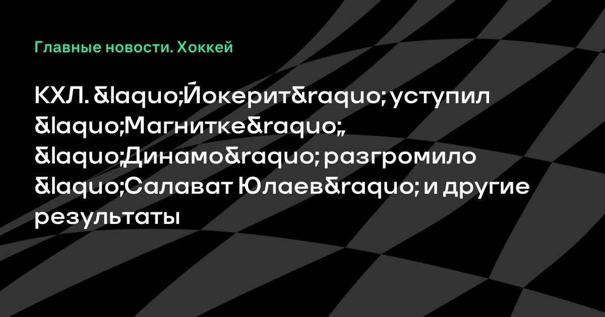 КХЛ. «Йокерит» уступил «Магнитке», «Динамо» разгромило «Салават Юлаев» и другие результаты