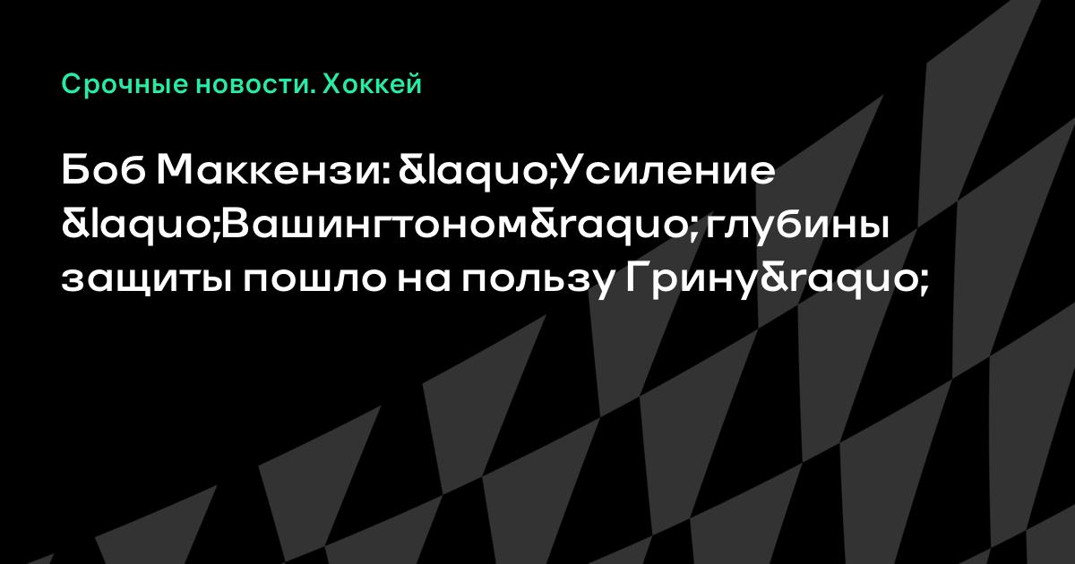 Боб Маккензи: «Усиление «Вашингтоном» глубины защиты пошло на пользу Грину»
