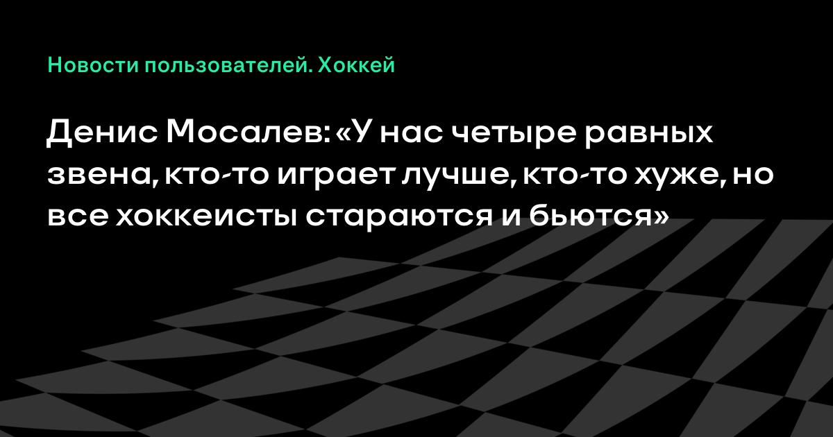 Денис Мосалев: «У нас четыре равных звена, кто-то играет лучше, кто-то хуже, но все хоккеисты стараются и бьются»