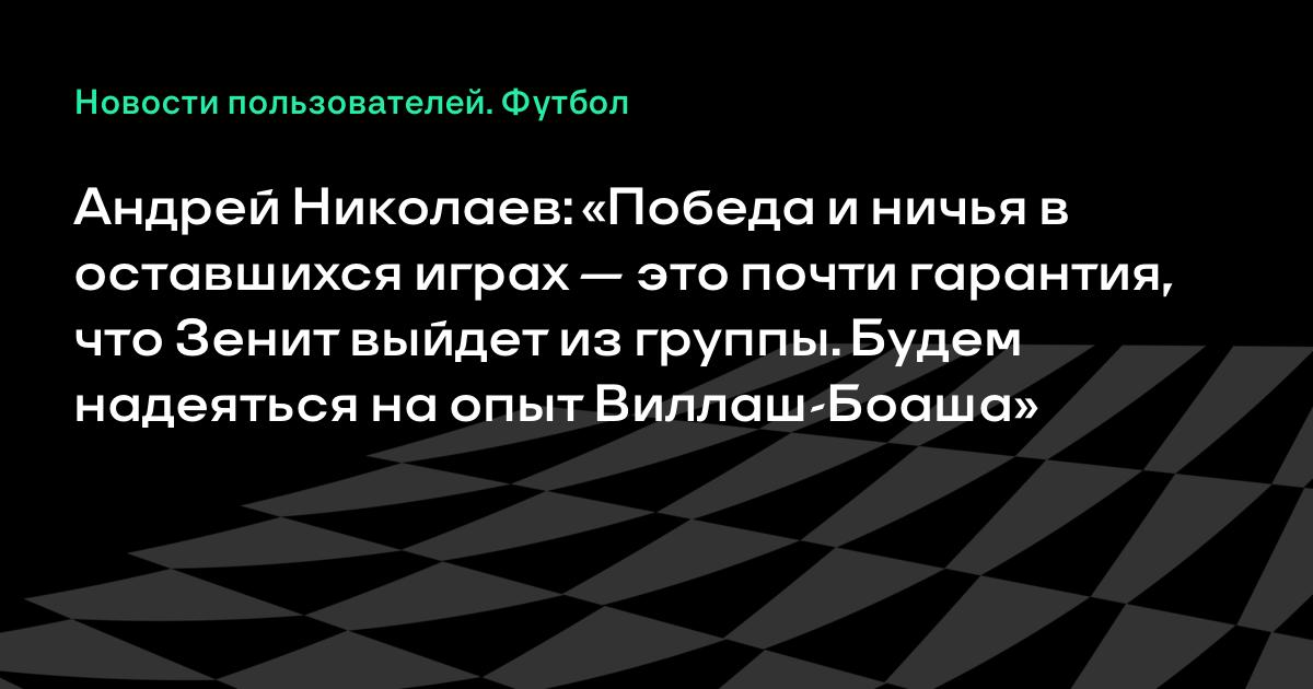 Андрей Николаев: «Победа и ничья в оставшихся играх — это почти гарантия, что Зенит выйдет из группы. Будем надеяться на опыт Виллаш-Боаша»