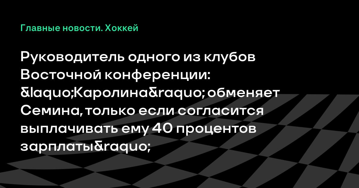Руководитель одного из клубов Восточной конференции: «Каролина» обменяет Семина, только если согласится выплачивать ему 40 процентов зарплаты»