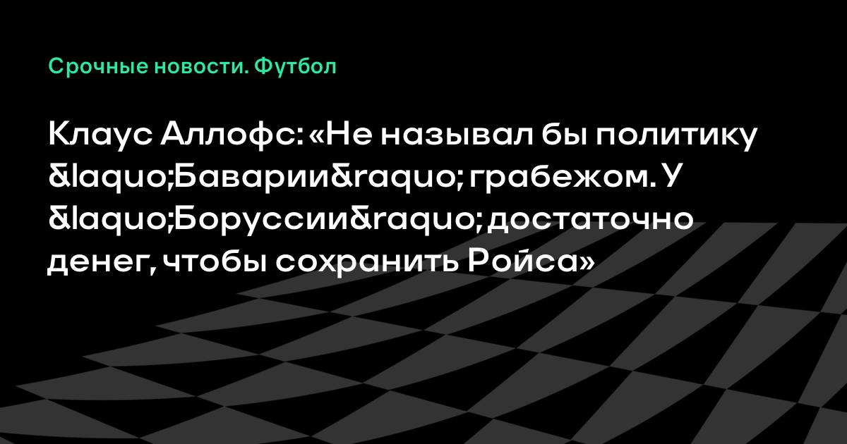 Клаус Аллофс: «Не называл бы политику «Баварии» грабежом. У «Боруссии» достаточно денег, чтобы сохранить Ройса»