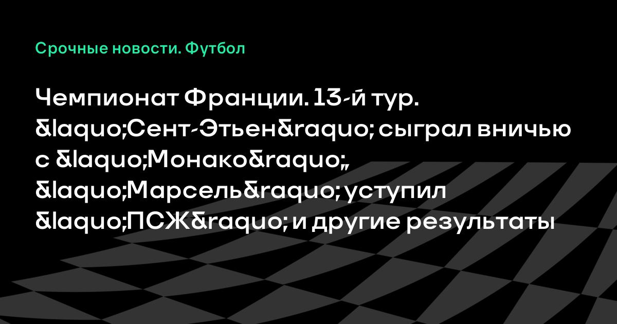 Чемпионат Франции. 13-й тур. «Сент-Этьен» сыграл вничью с «Монако», «Марсель» уступил «ПСЖ» и другие результаты