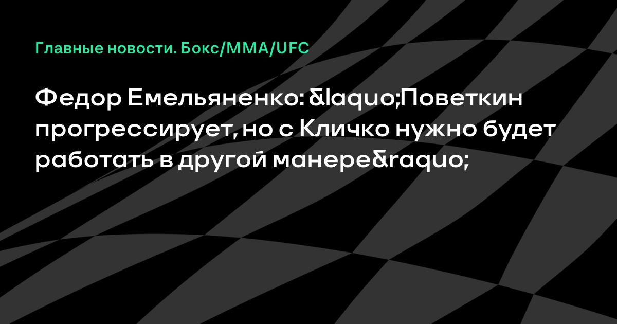 – Конечно хотел бы увидеть новый бой Поветкина с Кличко, — сказал Емельяненко. — Я очень переживаю за Саню. Он прогрессирует, но, как мне кажется, с Кличко нужно будет работать в другой манере. Да и хотелось бы, чтобы Саня поменьше пропускал.