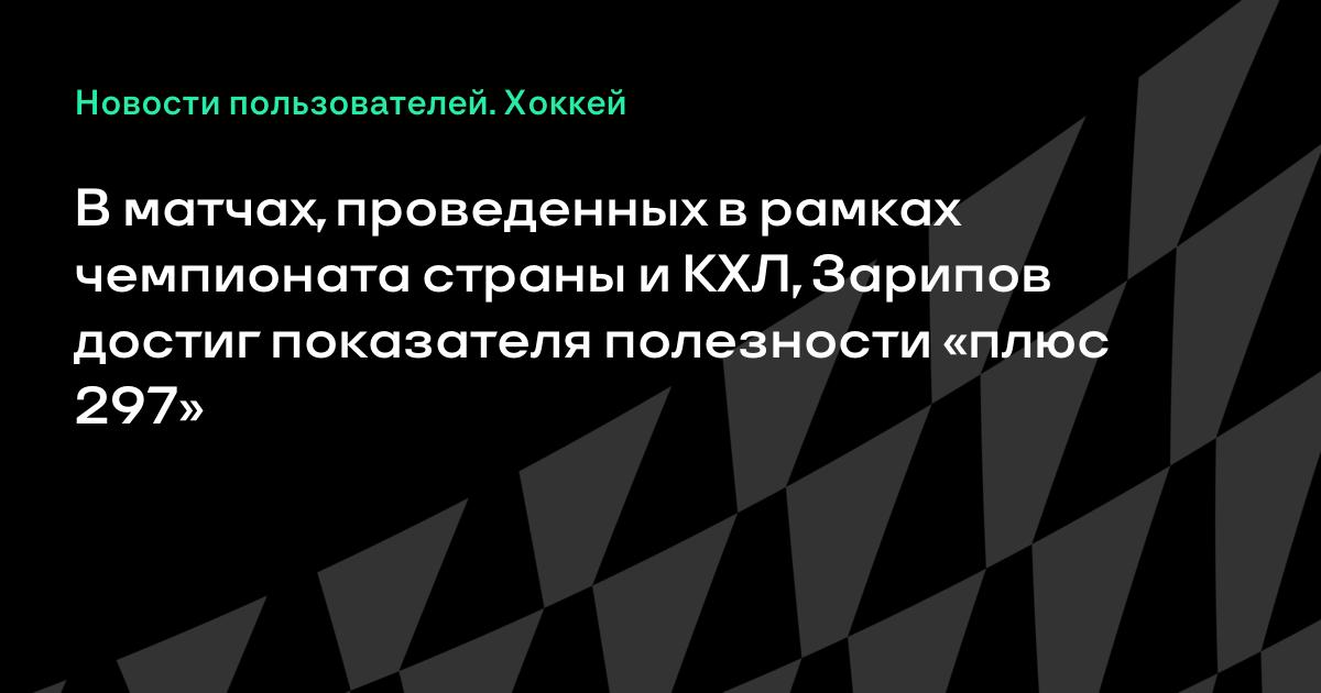 В матчах, проведенных в рамках чемпионата страны и КХЛ, Зарипов достиг показателя полезности «плюс 297»