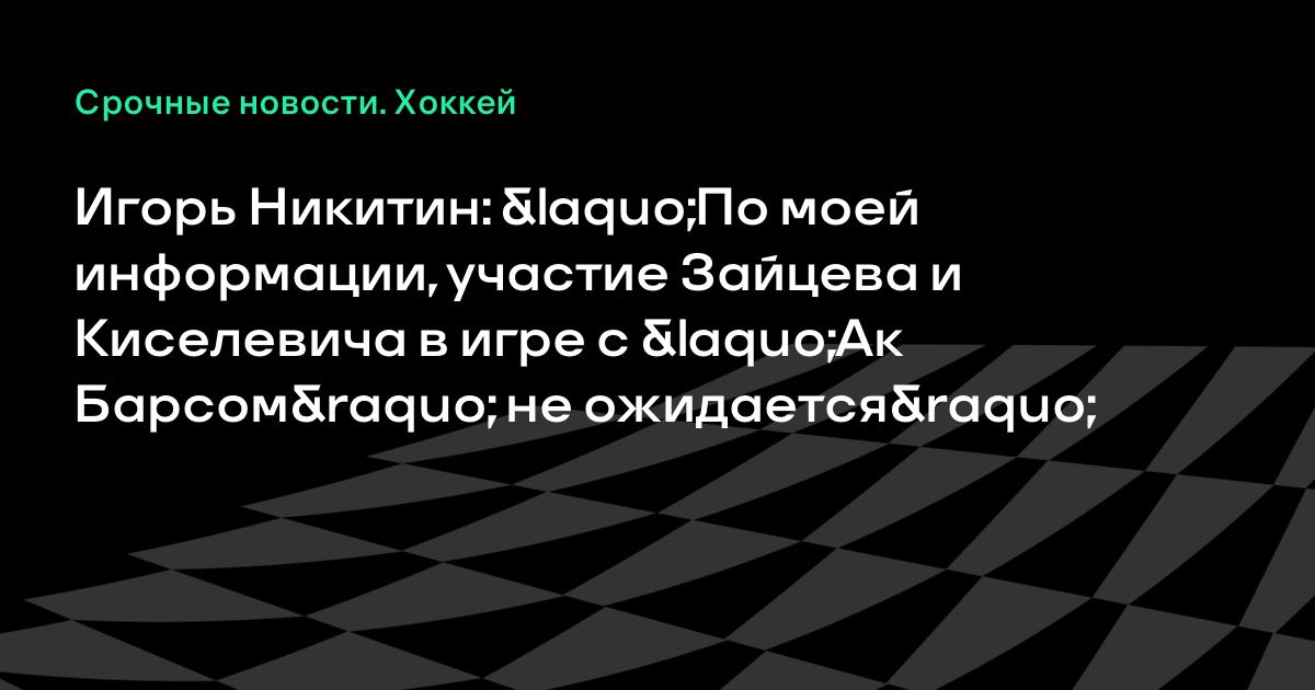 «Зайцев и Киселевич вчера только приступили к тренировкам на земле, поэтому их участие в игре с «Ак Барсом», по моей информации, не ожидается», – отметил Никитин.