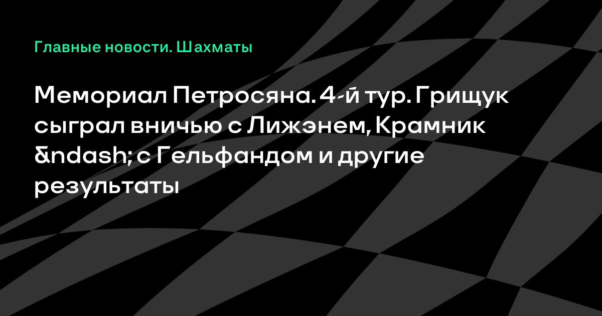 Мемориал Петросяна. 4-й тур. Грищук сыграл вничью с Лижэнем, Крамник – с Гельфандом и другие результаты